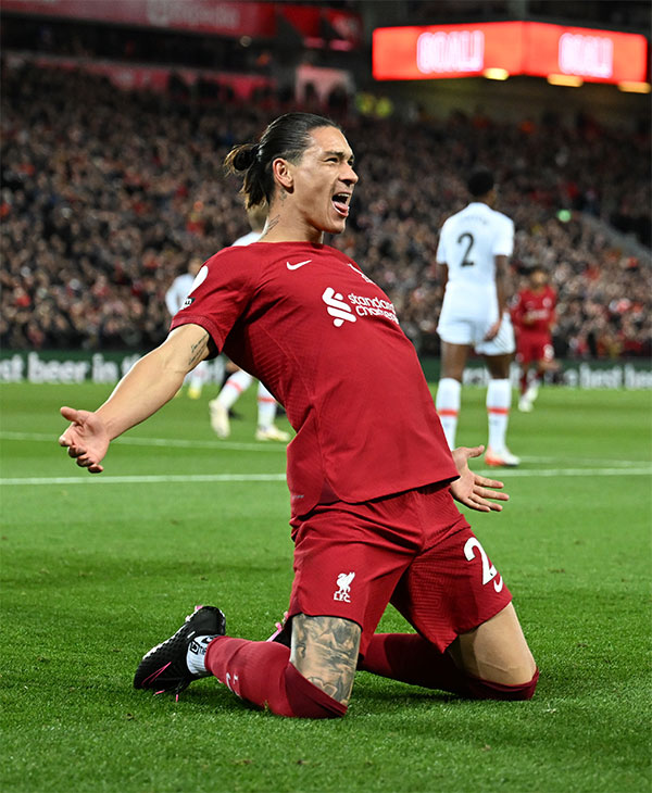 แต่แล้วนาทีที่ 22 เจ้าถิ่น ทะยานออกนำ 1-0 คอสตาส ซิมิคาส เก็บบอลทางซ้ายตั้งป้อมครอสเข้าเขตโทษโค้งมาเข้าหัว ดาร์วิน นูนเญซ โฉบมาขวิดเปลี่ยนทางกระดอนพื้นเสียบหน้าต่างเสาไกล