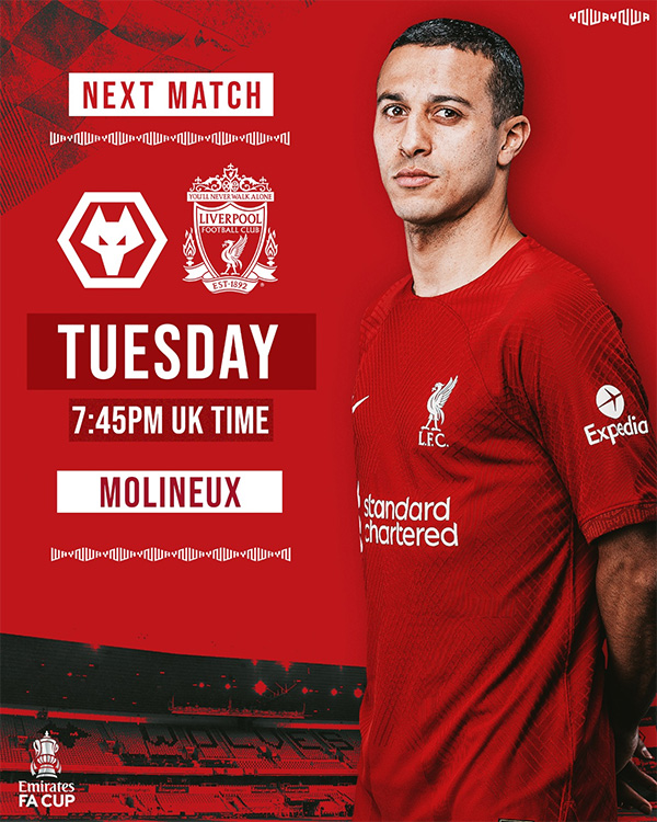 วูล์ฟส์ตั้งแต่ตั้งฆูเลน โลเปเตกี มาเป็นกุนซือเกมรุกดูมีความน่ากลัวขึ้นเยอะ การเจอกันที่แอนฟิลด์ในเอฟเอ คัพ ไม่กี่วันนี้ก็เกือบจะบุกชนะถึงถิ่นแอนฟิลด์ นัดนี้เล่นเป็นนัดรีเพลย์มีแววว่าจะเป็นเกมที่ยากอีกครั้งของลิเวอร์พูล ที่อยู่ในช่วงฟอร์มตกอย่างต่อเนื่อง มีความเสี่ยงไม่น้อยที่เส้นทางป้องกันแชมป์จะมาหยุดอยู่แค่รอบสาม ล่าสุดก็เพิ่งจะโดนไบรท์ตันเล่นงานไม่มีสภาพ เกมรุกความเฉียบคมดูหายไปเยอะ เป็นโอกาสของวูล์ฟส์ที่จะเบียดชนะและผ่านเข้ารอบต่อไป